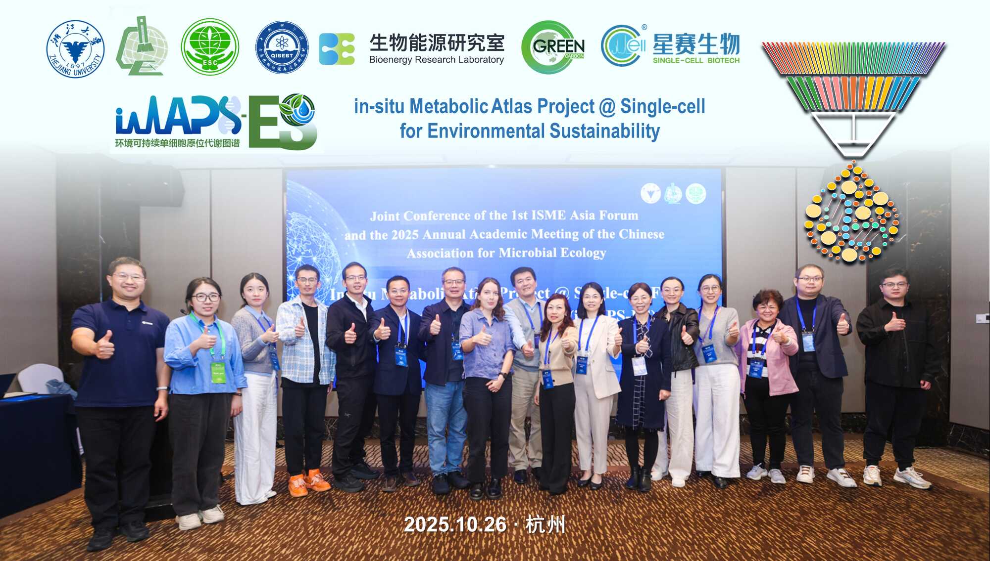 10月24至27日,中国生态学会微生物生态专业委员会2025年学术年会暨国际微生物生态学会第一次亚洲论坛在杭州召开。大会期间,由浙江大学、中国生态学会微生物生态专业委员会、青岛能源所生物能源研究室、Green Carbon期刊中心等联合组织的平行分会“in-situ Metabolic Atlas Project @ Single-cell for Environmental Sustainability”(iMAPS-ES研讨会)于10月26日上午举行。