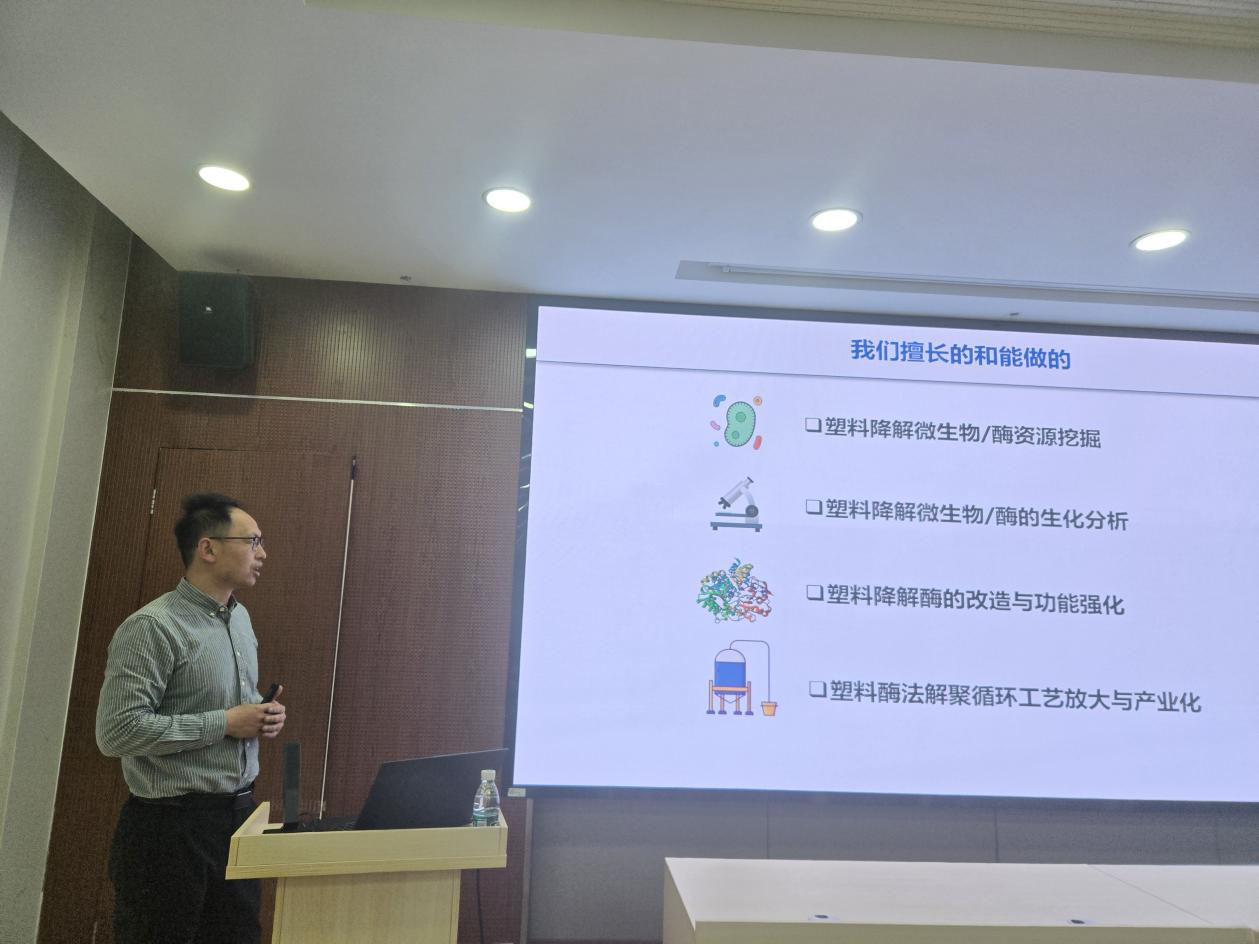 专题报告环节,青岛能源所栾国栋研究员、王士安研究员、王业飞项目研究员、张佳副研究员、聂二旗助理研究员,南京工业大学章文明教授、周俊研究员、宋天顺教授、周杰副教授、吴夏芫副教授、方艳副教授、陈飞飞副教授、孙美莉讲师先后作专题报告,系统展示了各自团队在合成生物学、生物催化、代谢工程等方向的前沿探索、关键技术突破及创新成果,凸显了双方研究力量的前沿性、互补性与协同潜力。交流研讨阶段,师生围绕学科交叉、项目合作、联合培养机制等展开热烈讨论,并就学生早期参与科研、课程共建、常态化学术交流等达成多项共识。