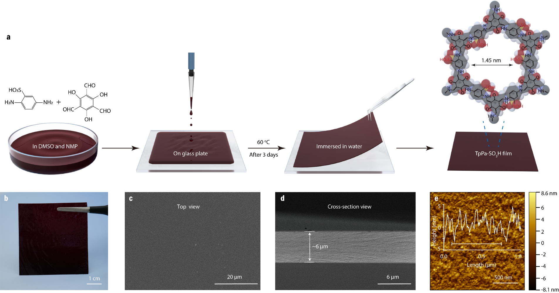 图2 磺酸COF膜的制备与表征