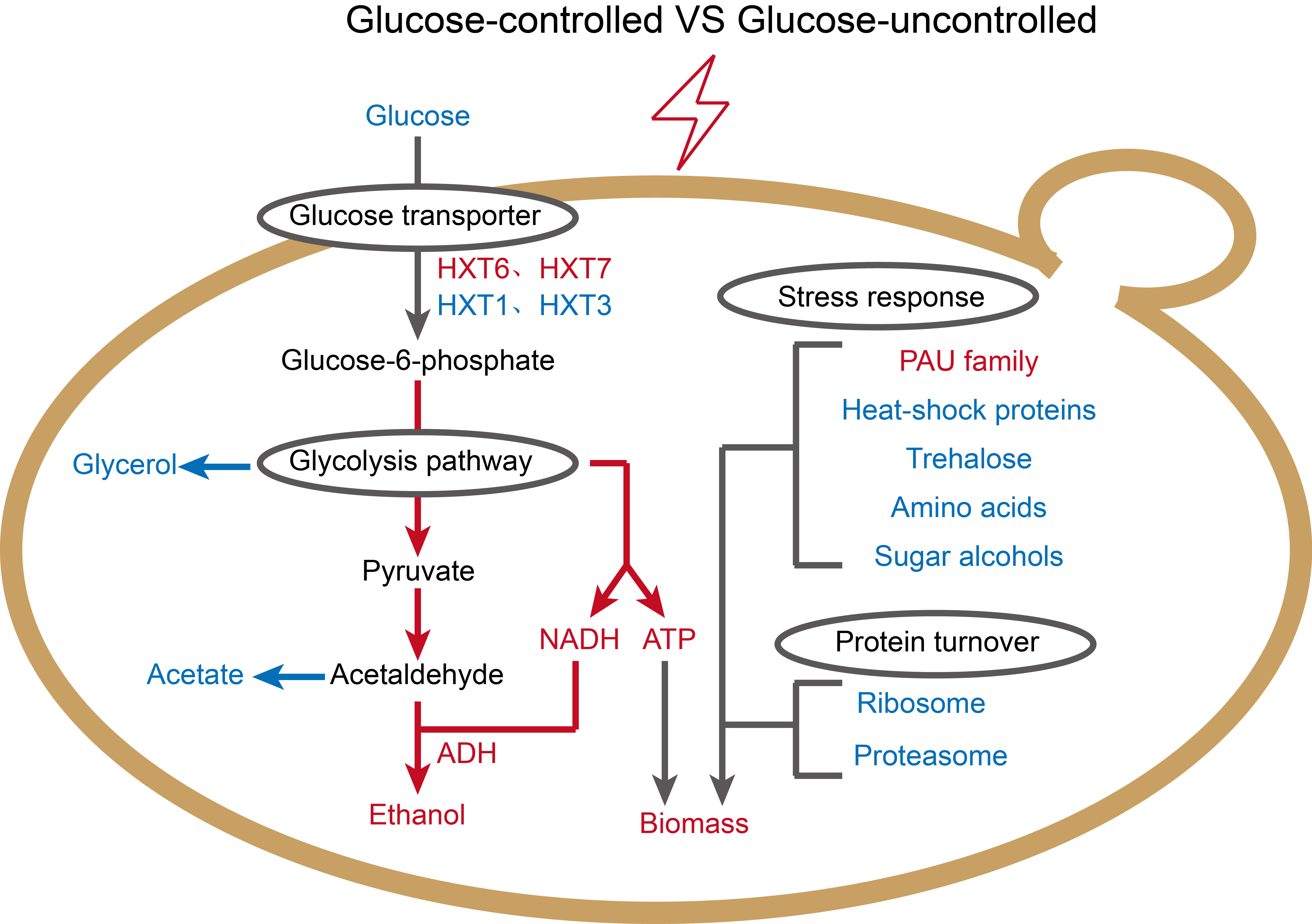近日,青岛能源所智能生物制造研究组王冠副研究员通过多组学联合分析,揭示了在精准控制葡萄糖浓度条件下,酿酒酵母如何优化资源分配,显著提高乙醇产量的分子机制。2025-11-14