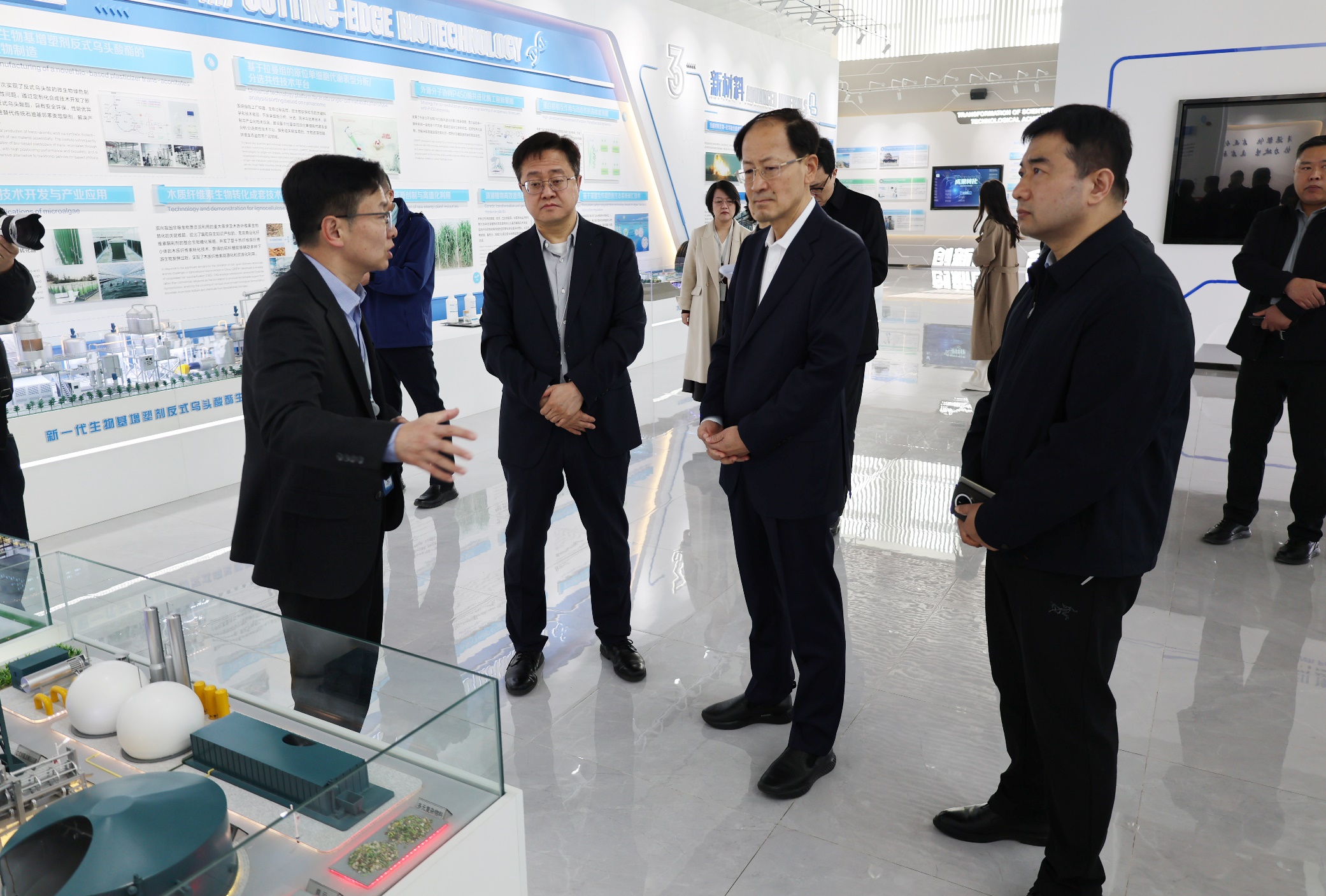 3月23日,青岛市政府党组成员、崂山实验室主任助理、科创大走廊工作推进领导小组执行副组长韩世军在市政府副秘书长、蓝谷管理局常务副局长、科创大走廊工作推进领导小组办公室主任杜乐江陪同下到青岛能源所参观调研。研究所所长、党委书记吕雪峰陪同调研。