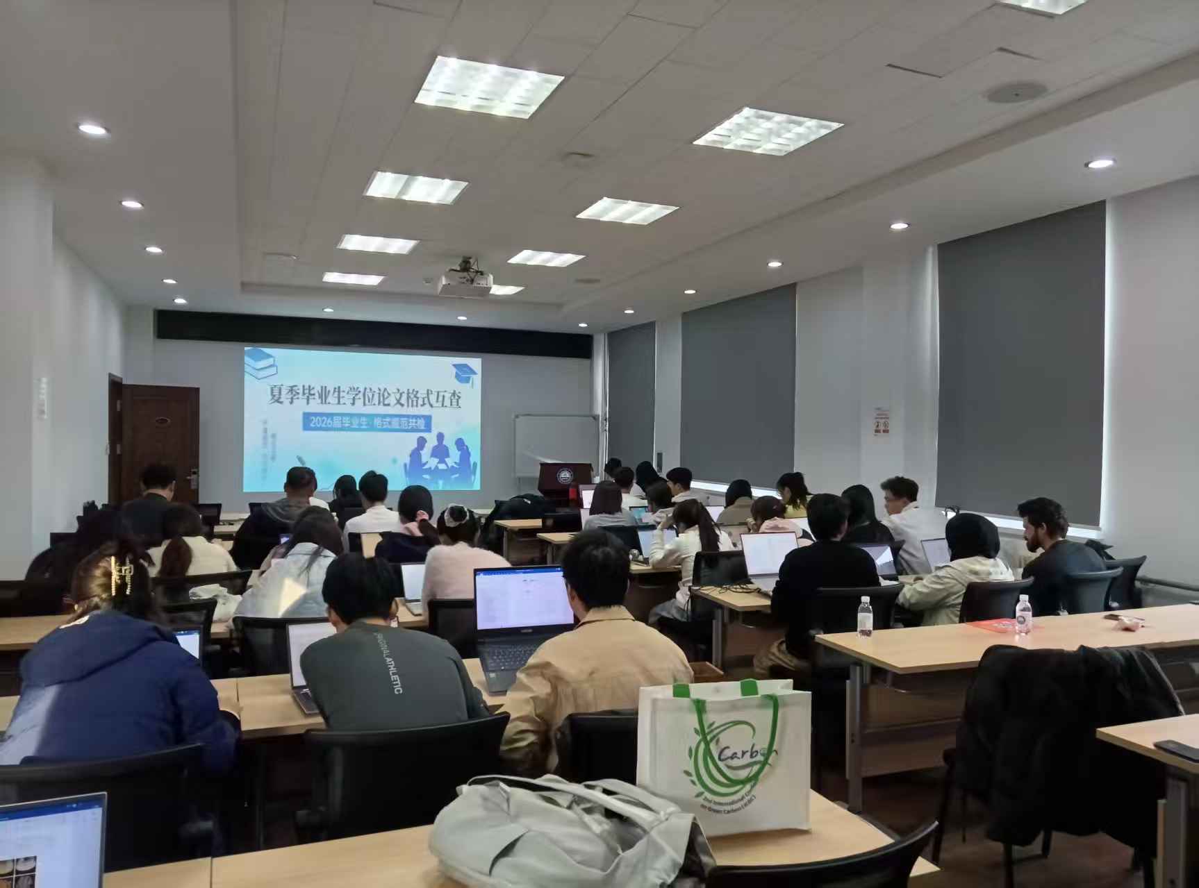 本次互查紧扣国家学位论文抽检与盲审标准,严格对照《中国科学院大学研究生学位论文撰写规范指导意见》,采取3-4人分组交叉互查的模式开展。同学们围绕页面排版、章节结构、图表标注、公式编号、参考文献著录、字体行距等核心要素逐项核查、交叉纠错。现场交流充分、氛围认真,大家在互查中发现问题、交流经验、共同改进,有效解决了论文格式不统一、细节不规范、易错点易遗漏等问题,切实提升了学位论文的规范性与严谨性。