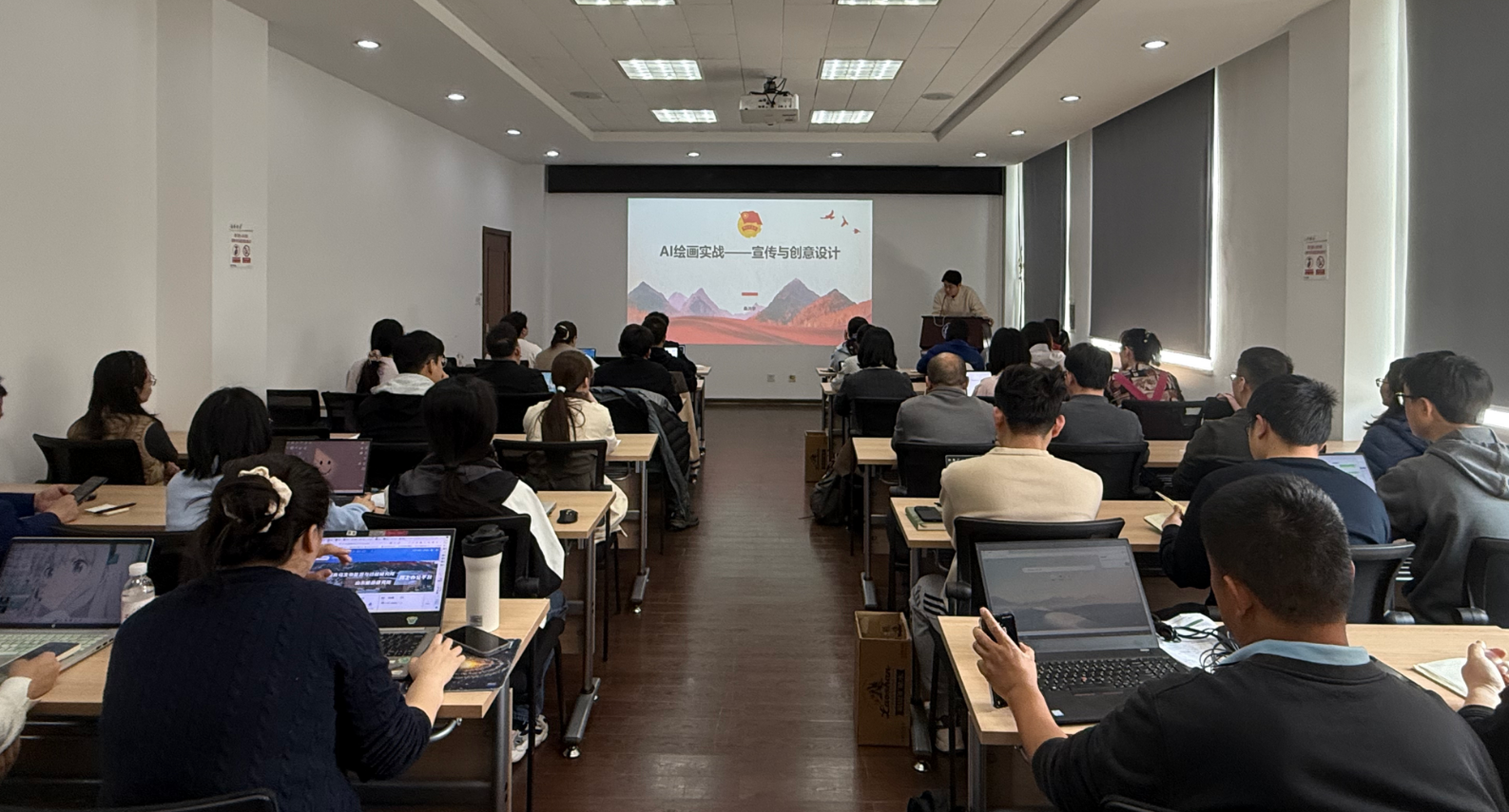 培训以AI绘画实用技能为核心,兼顾理论与实操,采用“主会场+视频分会场”联动模式打破空间限制。培训摒弃晦涩理论,紧扣科研办公实际需求,聚焦AI绘画核心公式,通过通俗讲解和手把手指导,助力参训人员快速上手。1.5小时的课程干货满满,吸引全所职工、学生踊跃参与,现场学习氛围浓厚。